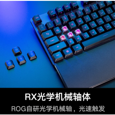 ROG游侠2 RX 光轴机械键盘 有线游戏键盘 RGB背光 键线分离 防水防尘键盘104键 红轴 PBT版