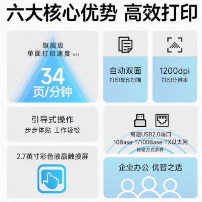 得力(deli)M3400FDN黑白激光打印机自动双面A4复印扫描传真商用办公专用一体 M3400FDN(四合一+双面+双扫双复)