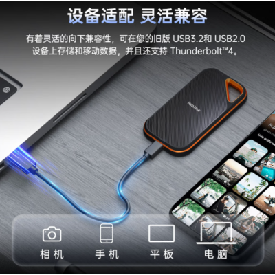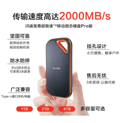 闪迪(SanDisk)2TB 移动固态硬盘(PSSD)E82 读3800MB/s 写3700MB/s 兼容雷电4 type-c 手机电脑外接